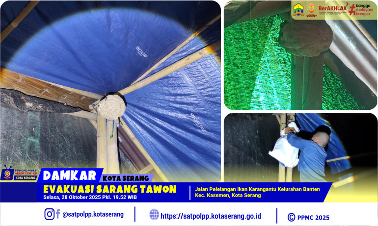 Evakuasi Sarang Tawon Jalan Pelelangan Ikan Karangantu Kelurahan Banten Kasemen