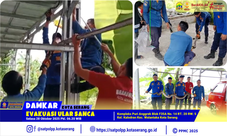 Evakuasi Ular Sanca Perumahan Gedung Kaloran Kelurahan Serang