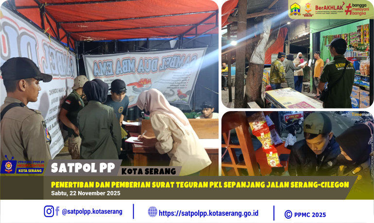 Penertiban dan Pemberian Surat Teguran PKL Sepanjang Jalan Serang-Cilegon