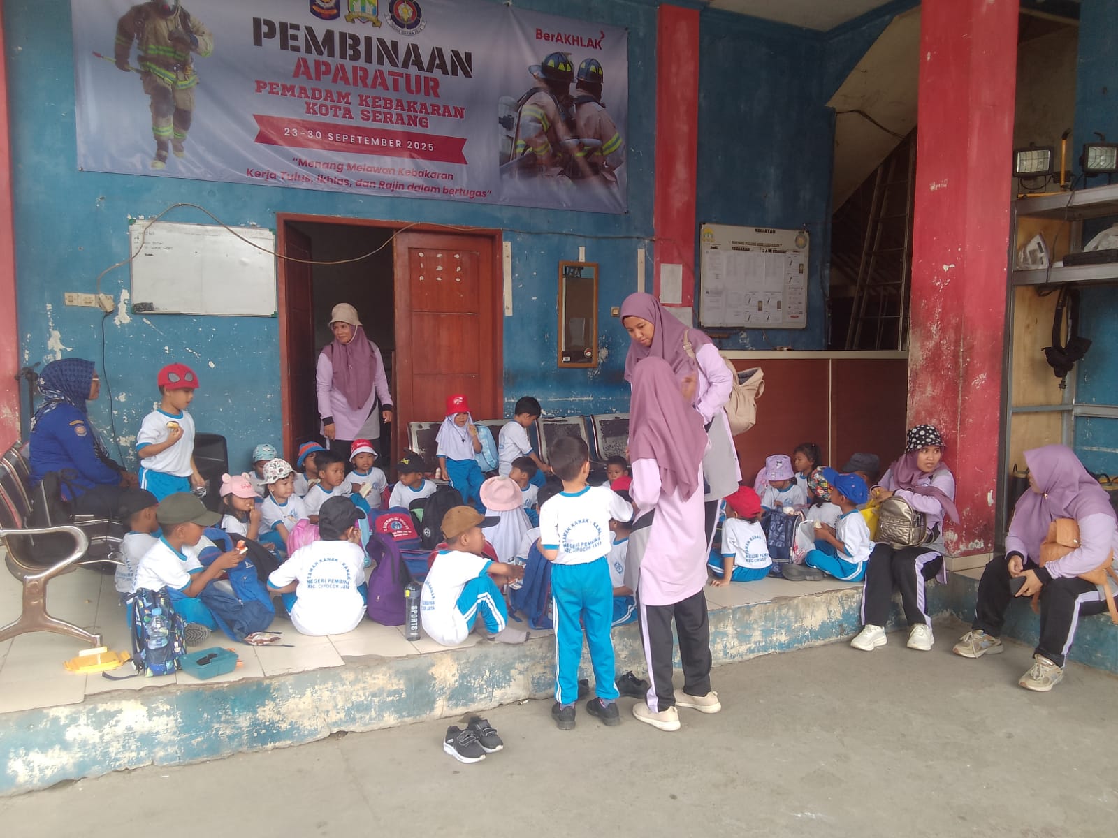 Taman Kanak-Kanak (TK) Negeri Cipocok Jaya, Kota Serang, mengunjungi Markas Komando Pemadam Kebakaran (Mako Damkar) Kota Serang pada Senin (29/09). Kunjungan ini bertujuan untuk memperkenalkan profesi pemadam kebakaran dan memberikan pengetahuan tentang proses pemadaman kebakaran kepada anak-anak usia dini. Hal ini merupakan bagian dari upaya Bidang Pemadam Kebakaran untuk mengedukasi anak-anak usia dini tentang bahaya kebakaran dan pencegahan dini, baik di sekolah maupun di masyarakat.