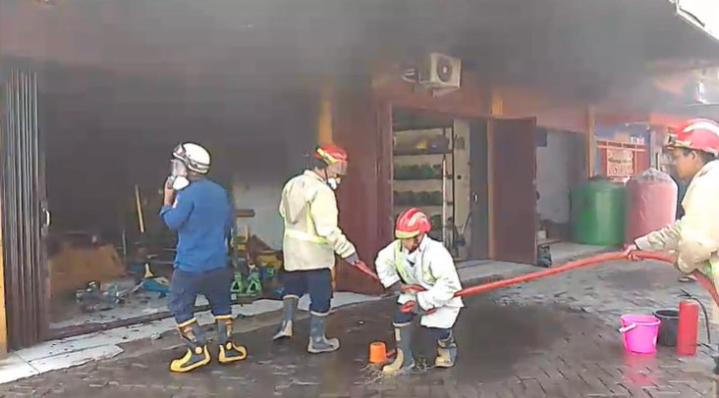 Kebakaran di ruko suku cadang terjadi sekitar pukul 13.15 WIB. Menurut petugas di lokasi kejadian, api diduga berasal dari regulator gas, yang menyebabkan api menjalar ke barang-barang mudah terbakar lainnya di dalam ruangan tertutup tersebut.