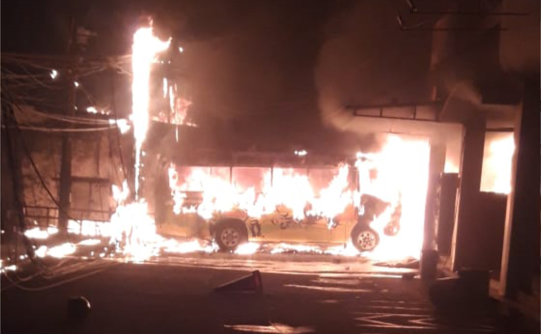 Kebakaran yang terjadi pukul 19.00 WIB tersebut diduga disebabkan oleh korsleting listrik di gardu induk. Korsleting tersebut menimbulkan percikan api dan ledakan, yang membakar sebuah minibus. Kejadian ini memicu kepanikan warga dan pedagang di area terminal.