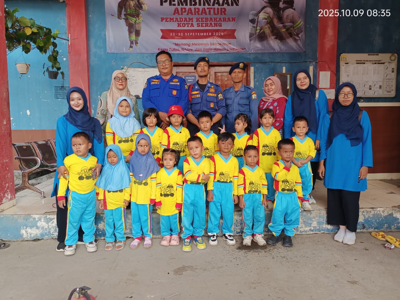 Pemadam Kebakaran (Damkar) Kota Serang menerima kunjungan dari Taman Kanak-kanak (TK) Abdi Pratiwi yang berlokasi di Jalan Ciruas Petir, Perumahan Graha Walantaka, Blok F4 No. 1-2, RT. 19, RW. 06, Kelurahan Pengampelan, Kecamatan Walantaka, pada Kamis (10/09). Kunjungan ini bertujuan untuk mengedukasi anak-anak tentang profesi petugas pemadam kebakaran.