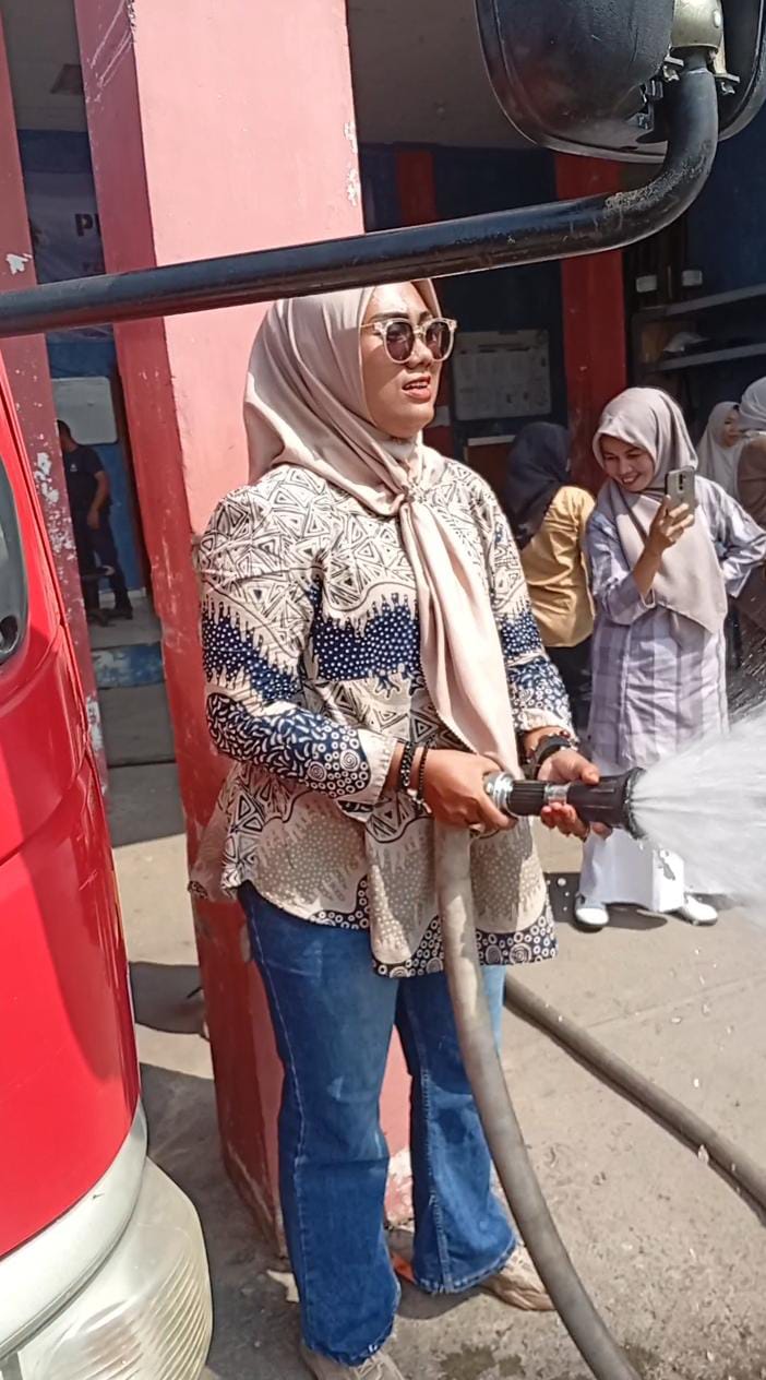 Heni menambahkan bahwa dalam kegiatan ini anak-anak TK didampingi oleh gurunya mendapatkan materi sederhana dari petugas yaitu tata cara pelaporan kejadian kebakaran, pengenalan alat pemadam kebakaran, penyemprotan air dan praktik pemadaman kebakaran serta materi lainnya.