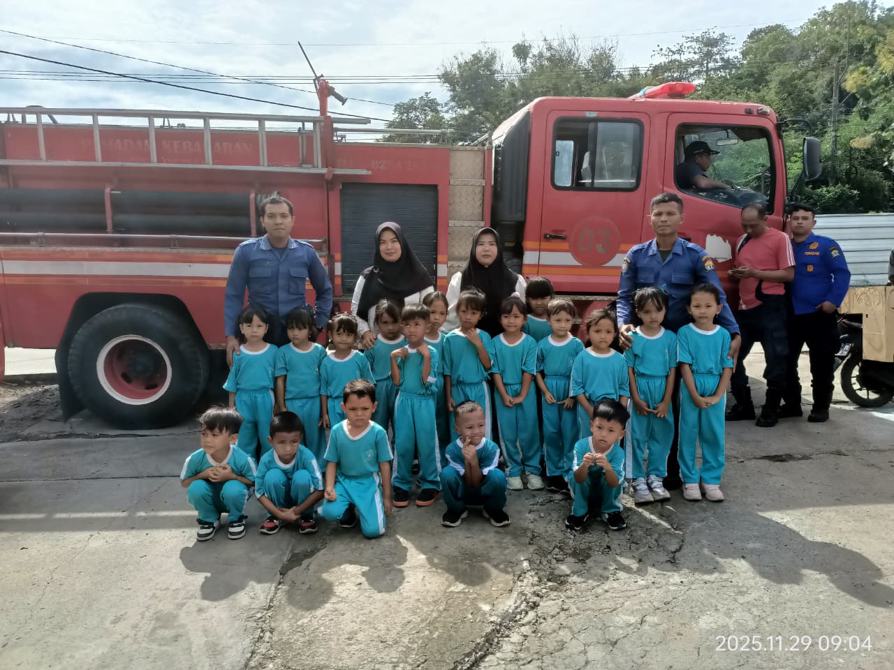 "Selain itu, mereka diberikan penjelasan tentang peralatan yang digunakan petugas pemadam kebakaran saat memadamkan api, dan anak-anak juga merasakan pengalaman menaiki mobil pemadam kebakaran dan serunya anak-anak PAUD saat petugas menyemprotkan air hujan buatan di sekitar area kantor," ujar Jamsari.