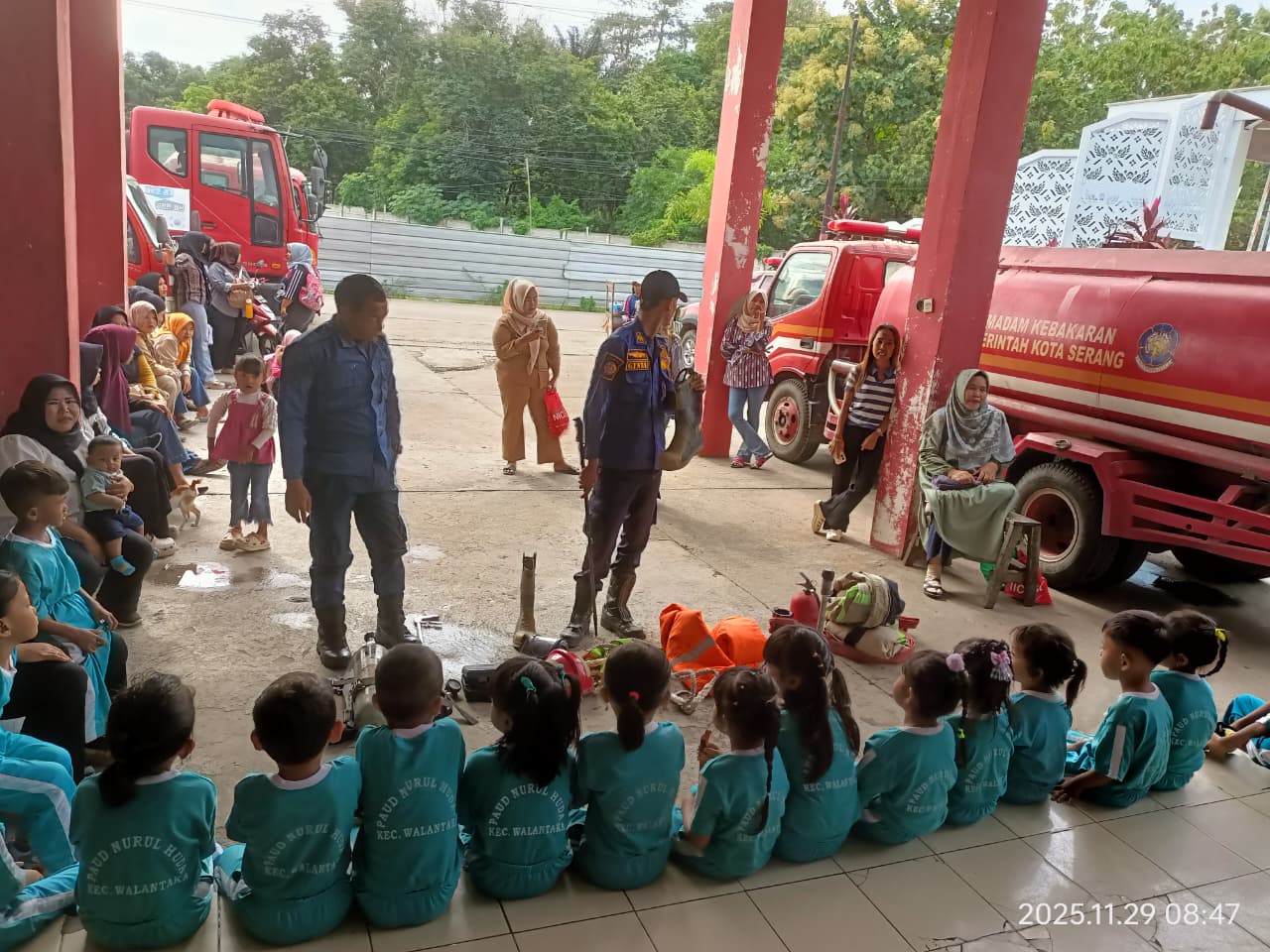 Hal ini dilakukan pada kunjungan Pendidikan Anak Usia Dini (PAUD) Nurul Huda Walantaka di Kota Serang pada Sabtu (29/11). PAUD yang berlokasi di Kampung Lipatik Lor RT. 08 RW. 02, Kelurahan Tegal Sari, Kecamatan Walantaka, Kota Serang ini bertujuan untuk memperkenalkan profesi pemadam kebakaran dan memberikan pengetahuan tentang proses pemadaman api kepada anak-anak usia dini. Kunjungan ini juga merupakan bentuk upaya Pemadam Kebakaran untuk mensosialisasikan segala hal tentang bahaya kebakaran dan pencegahan dini kepada anak-anak usia dini, baik di sekolah maupun di masyarakat.