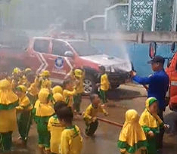 Heni Herawati menambahkan bahwa anak-anak diberikan penjelasan tentang penyebab kebakaran, cara memadamkannya, nama-nama kendaraan yang digunakan Pemadam Kebakaran, dan nomor telepon yang dapat dihubungi jika terjadi kebakaran. "Selain itu, anak-anak juga diperkenalkan dengan alat dan perlengkapan yang digunakan untuk memadamkan api," jelas Heni.