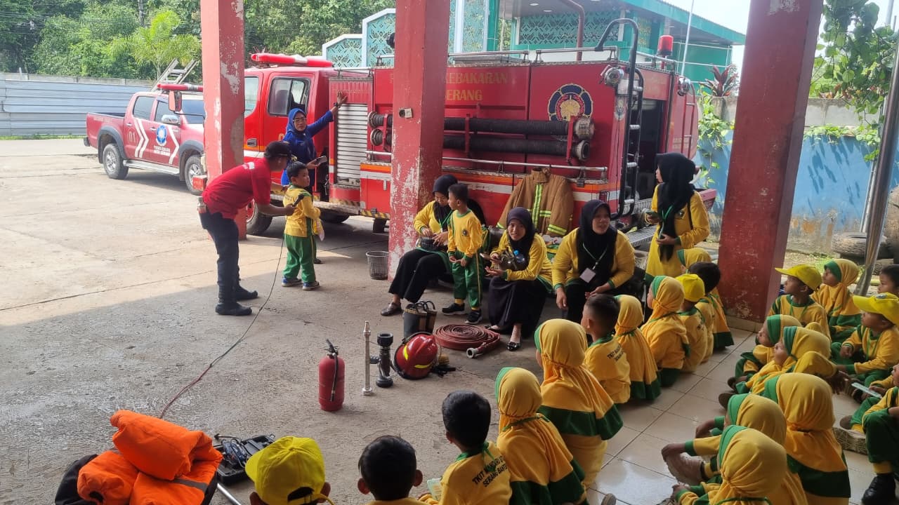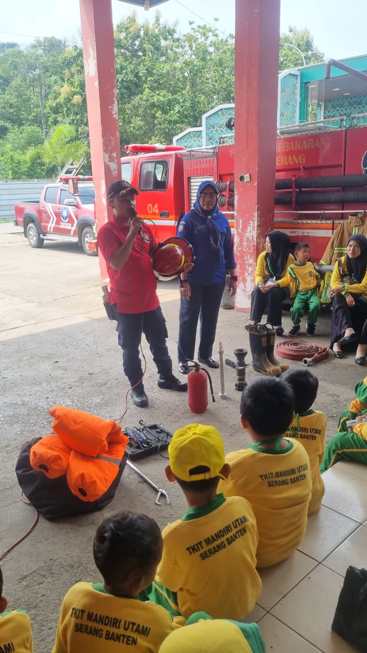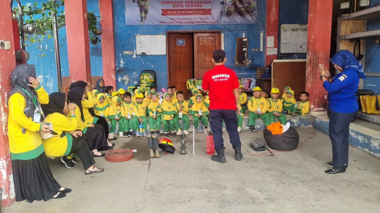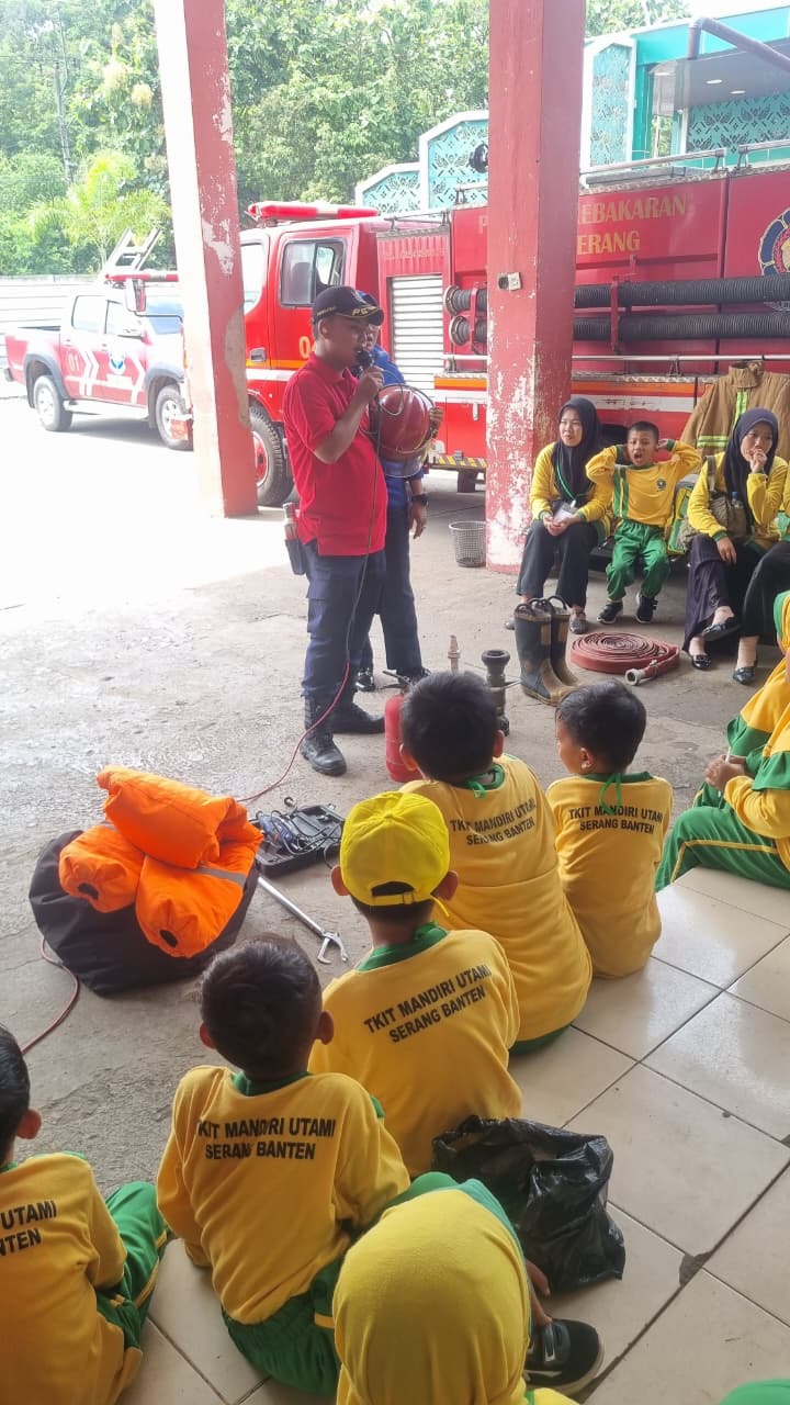 Bidang Pemadam Kebakaran Satuan Polisi Pamong Praja Kota Serang hampir setiap hari menerima siswa TK yang datang langsung ke kantor Pemadam Kebakaran di Jalan Bangdes, Kampung Turus, Penancangan, Kota Serang. Anak-anak usia dini ini mendapatkan edukasi tentang profesi pemadam kebakaran, termasuk hari ini, dari Taman Kanak-kanak (TK) Mandiri Utami Taktakan, Senin (20/10).