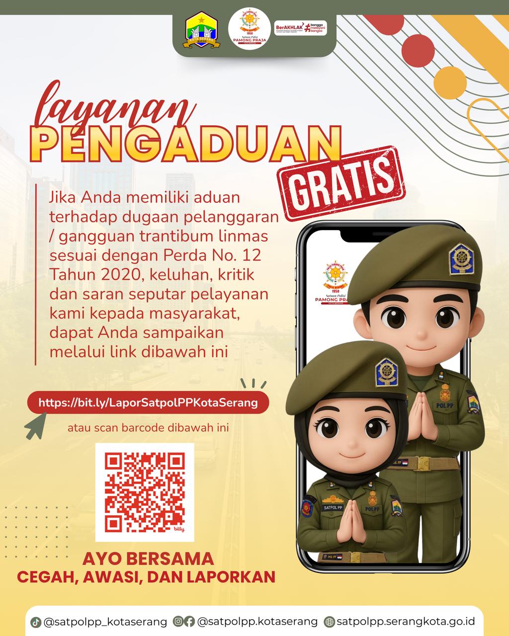 Untuk pengaduan dapat mengisi Lapor Satpol PP Kota Serang melalui link berikut ini:
